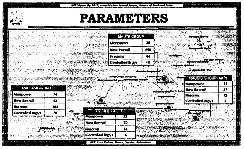 More specifically, the remnants of DAESH-inspired DIWM members and their allies, together with their protectors, supporters, and sympathizers, have been monitored in their continued efforts towards the radicalization/recruitment, financial and logistical buildup, as well as in their consolidation/reorganization in Central Mindanao, particularly in the provinces of Maguindanao and North Cotabato and also in Sulu and Basilan. These activities are geared towards the conduct of intensified atrocities and armed public uprisings in support of their objective of establishing the foundation of a global Islamic caliphate and a Wilayat not only in the Philippines but also in the whole of Southeast Asia.