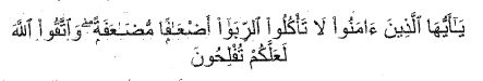 "O believers! Do not consume interest, multiplying it many times over. And be mindful of All, so you may prosper. " (Al-Qur'an 3:130)