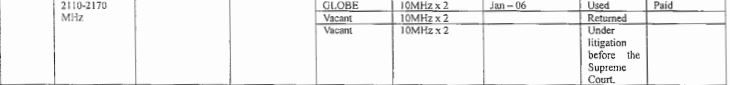 According to the National Telecommunications Commission, the following were the assigned and vacant 3G frequencies as of 2017:68