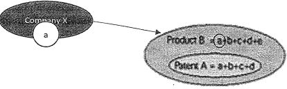 Patent A includes claims consisting of elements a + b + c + d.